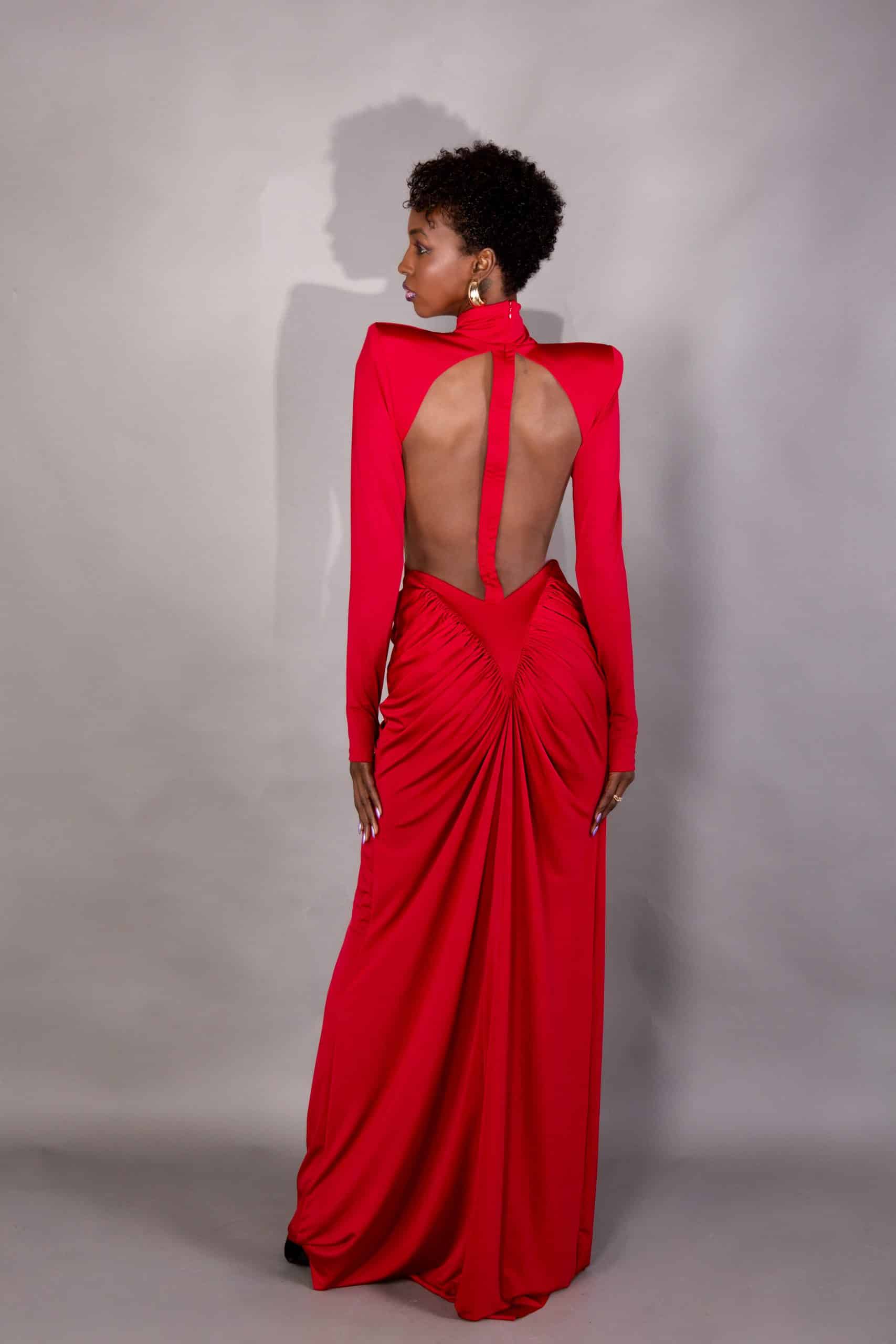 L’abito lungo Yume è la definizione di un’eleganza sofisticata con un tocco di audacia. Realizzato in jersey, unisce comfort e vestibilità impeccabile, esaltando ogni curva del corpo. Con una silhouette aderente, collo alto e maniche lunghe, è un capo di grande impatto che bilancia sensualità e raffinatezza. Le spalline strutturano la silhouette, aggiungendo presenza al look. Ideale per occasioni serali o eventi che richiedono un look d’impatto.